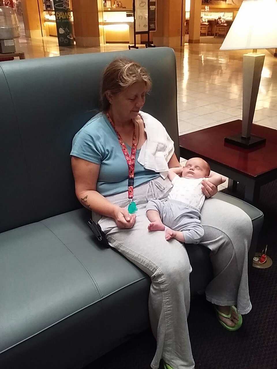 Waitin for Mommy Nancy and Nana Hardy at the mall.