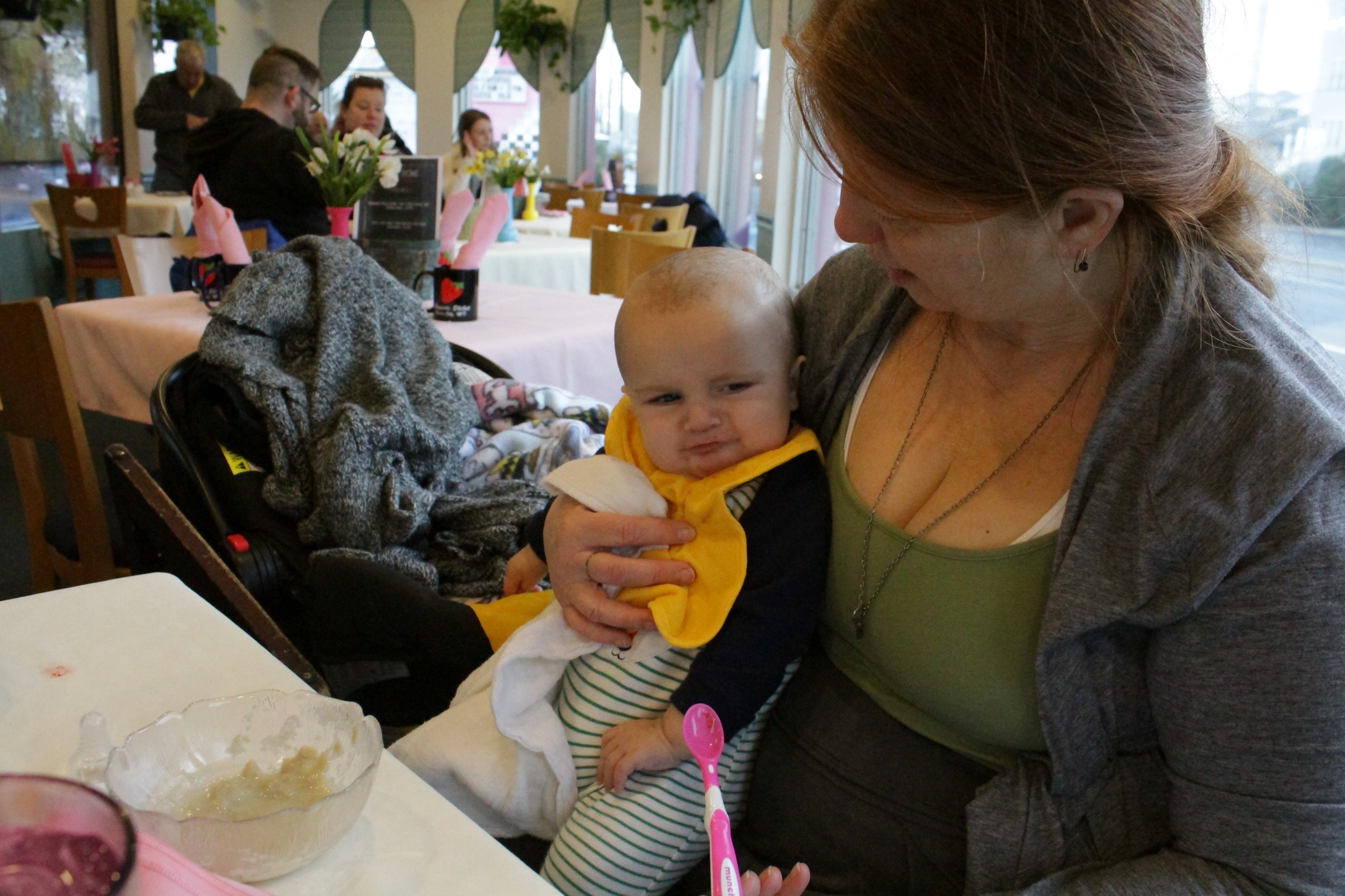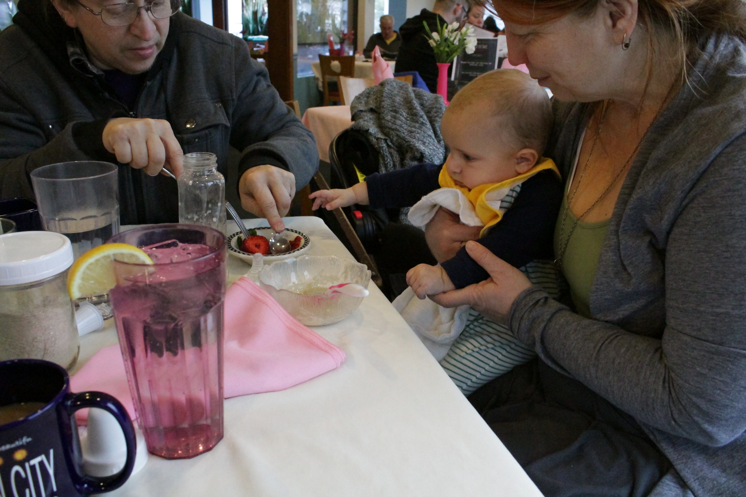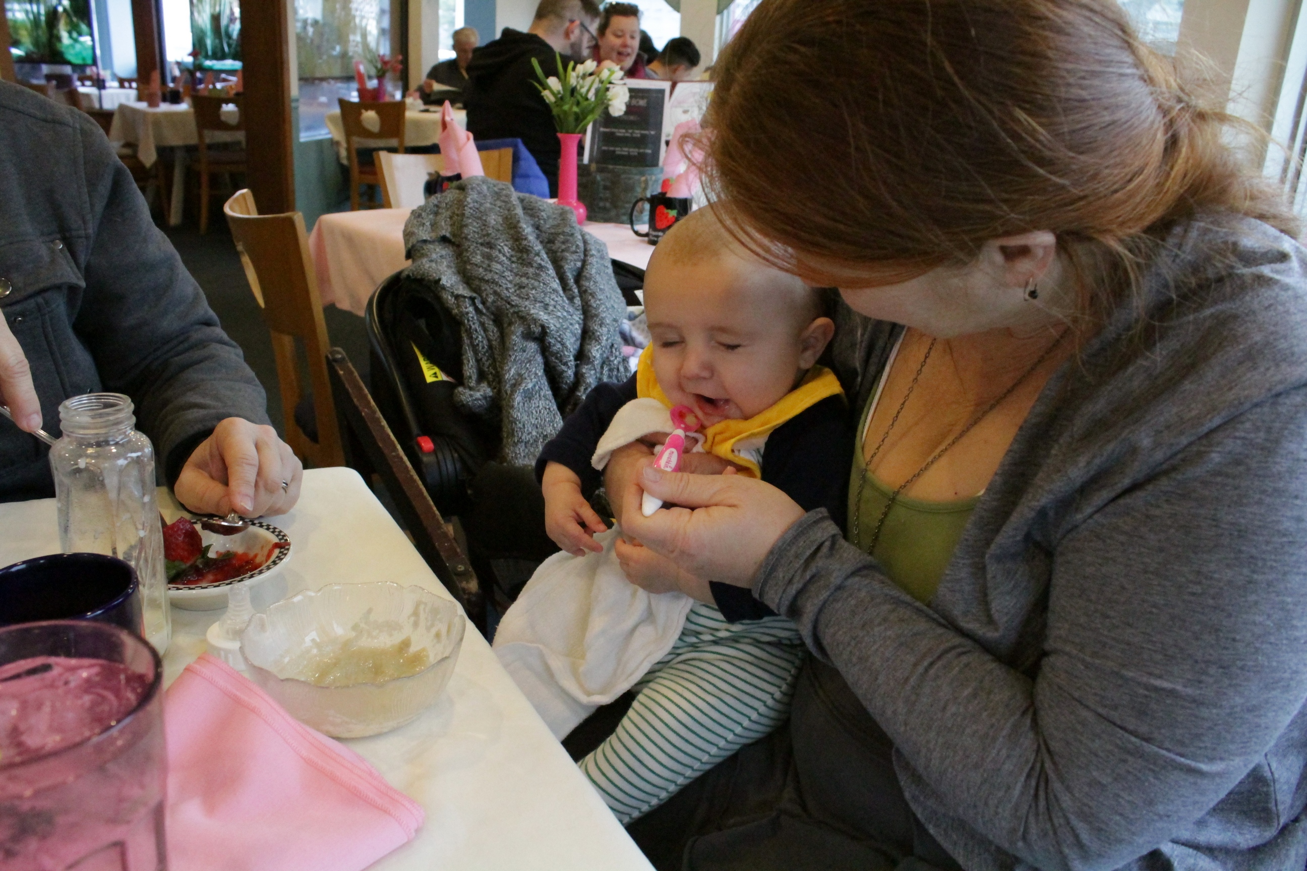 We tried the open mouth and pleading eyes, but when Mommy still wouldn’t share her gorgonzola bread, we tried this.