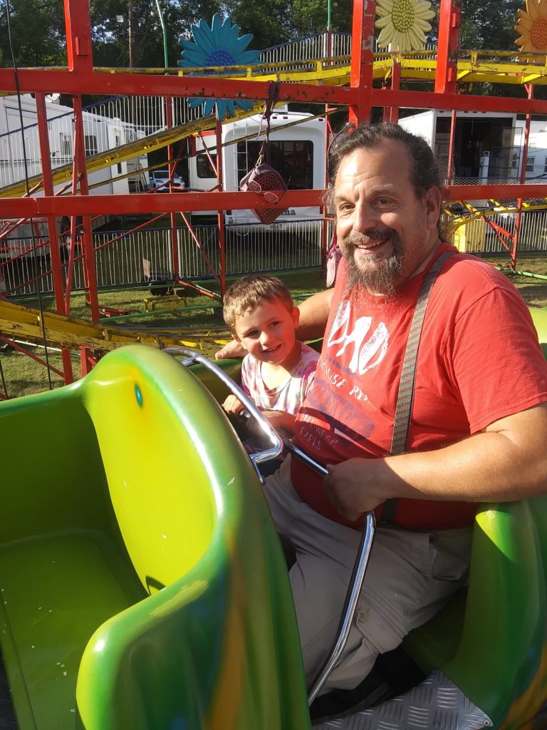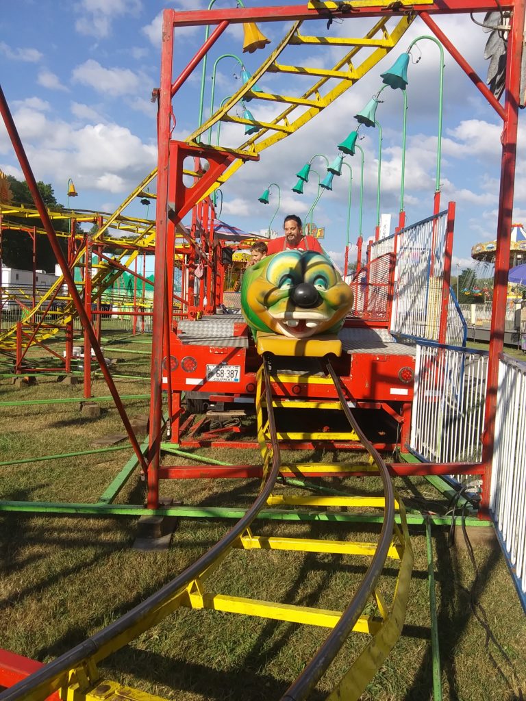 First Roller Coaster Ride August 25, 2022 At the Otsego County Fair. Ready to Go! Starting Down the First Grade